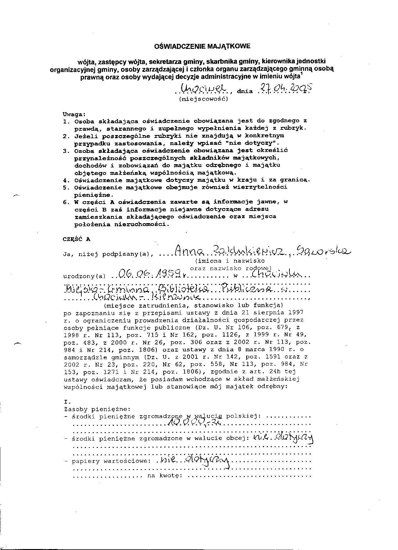 Oświadczenie majątkowe
