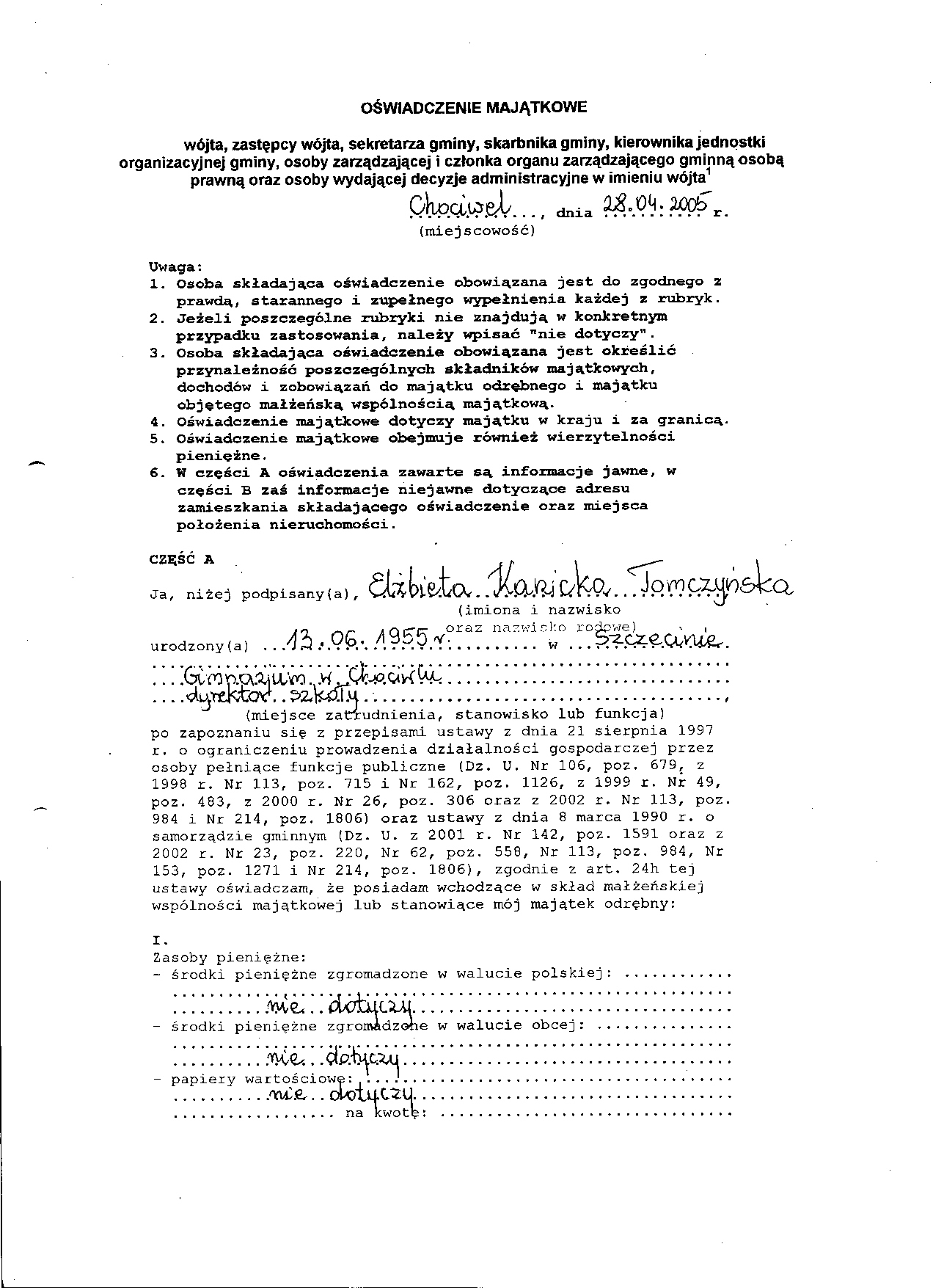 Oświadczenie majątkowe