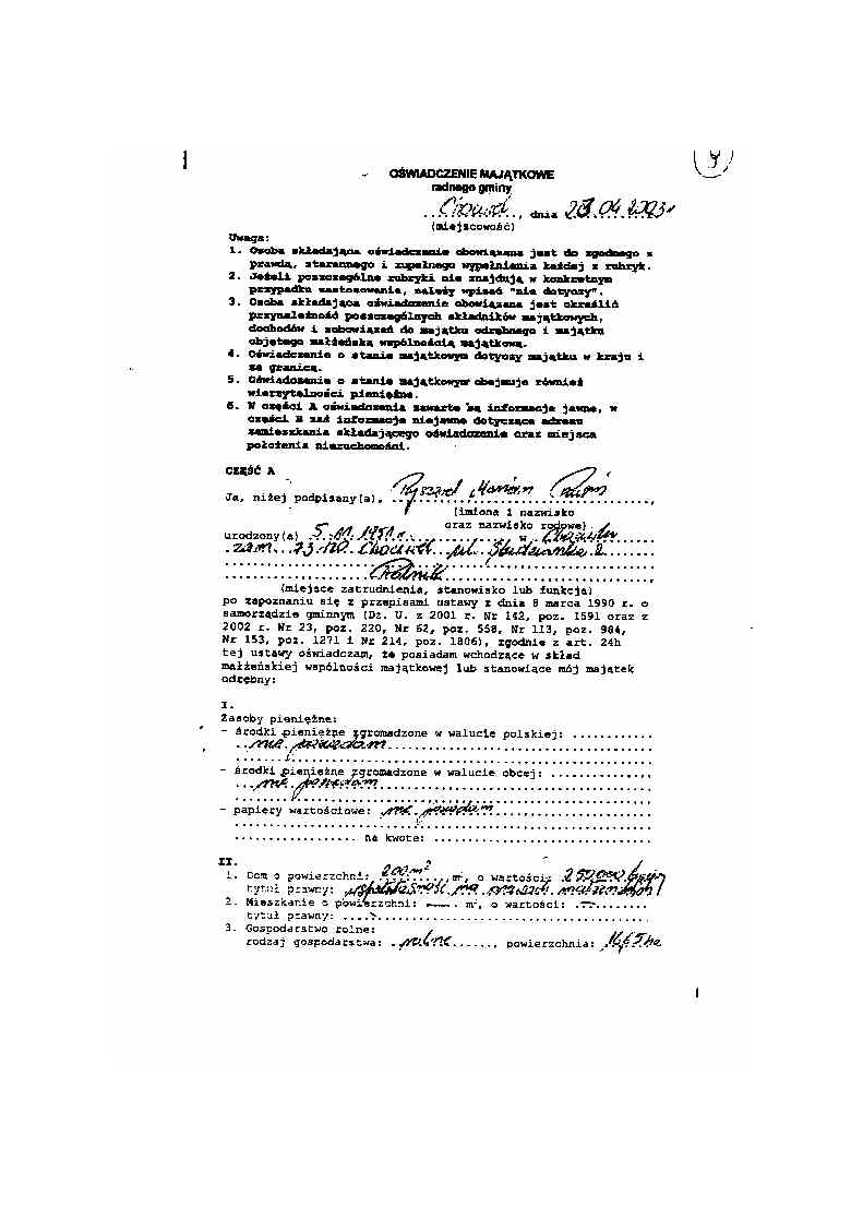 Oświadczenie majątkowe ( kserokopia)
