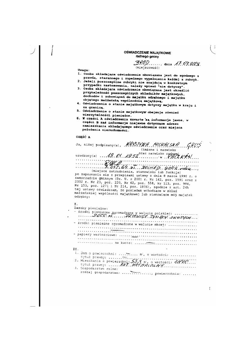 Oświadczenie majątkowe ( kserokopia)