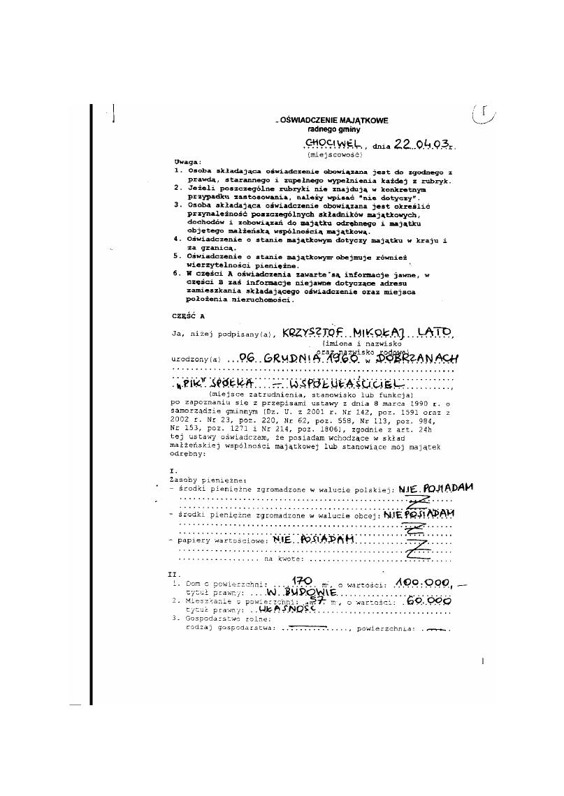 Oświadczenie majątkowe ( kserokopia)