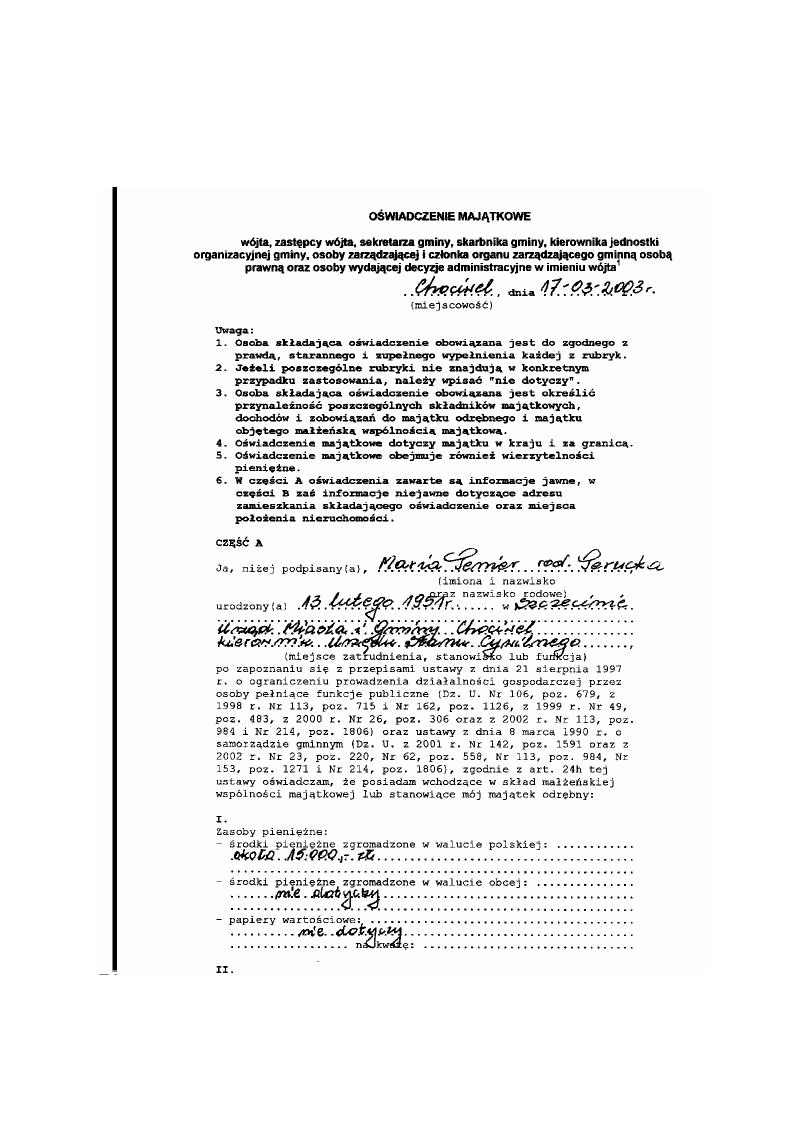 Oświadczenie majątkowe ( kserokopia)