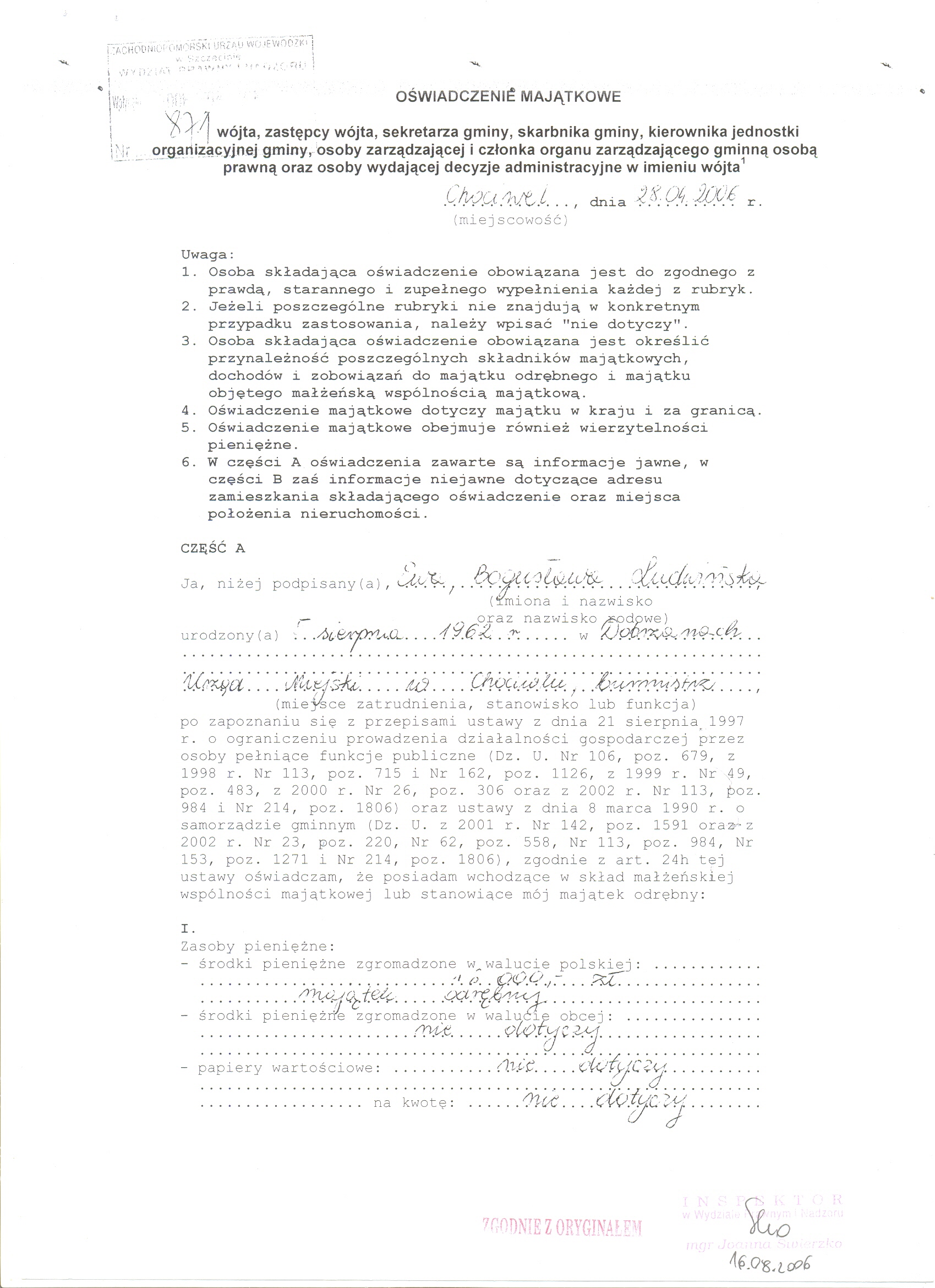 | Osoba, która wytworzyła informację lub odpowiada za treść informacji: | Robert Rusin | 18-09-2006 |