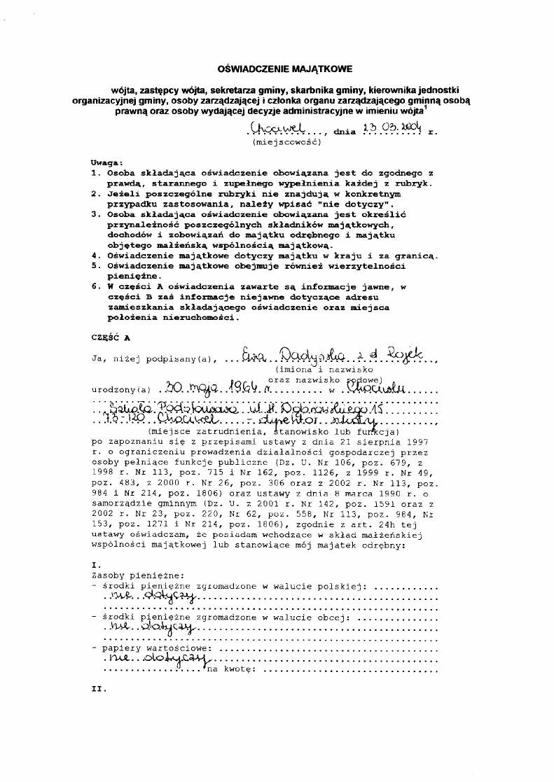 Oświadczenie majątkowe