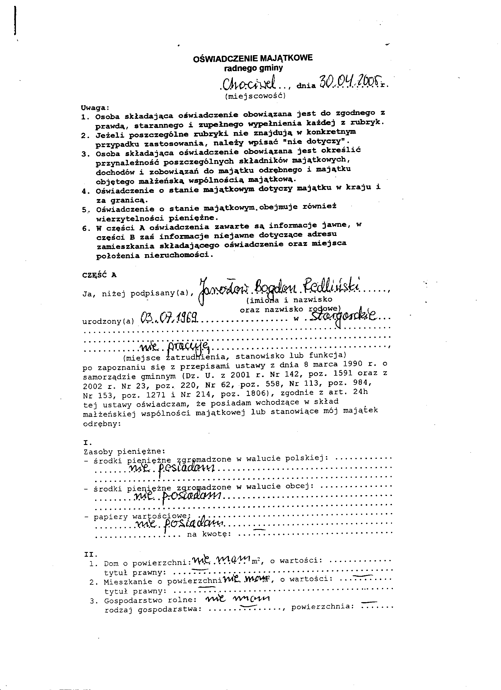 Protokół z przebiegu sprzedaży do III Ogłoszenia Burmistrza Chociwla w sprawie zbycia majątku ruchomego będącego własnością Gminy Chociwel w postaci samochodu ciężarowego - pożarniczego IFA oraz zbycia domku holenderskiego AB Phoenix 26