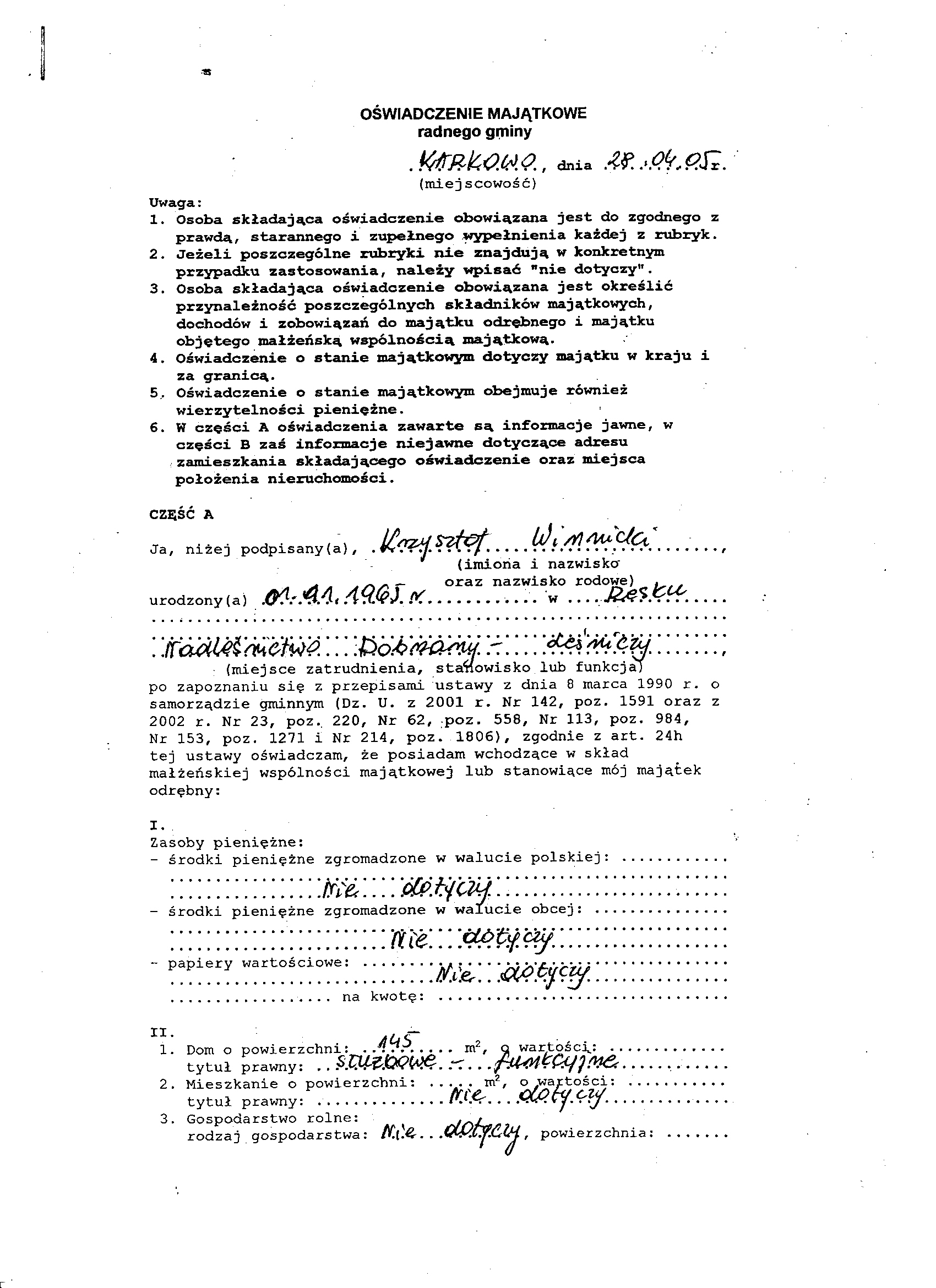 Protokół z przebiegu sprzedaży do III Ogłoszenia Burmistrza Chociwla w sprawie zbycia majątku ruchomego będącego własnością Gminy Chociwel w postaci samochodu ciężarowego - pożarniczego IFA oraz zbycia domku holenderskiego AB Phoenix 26