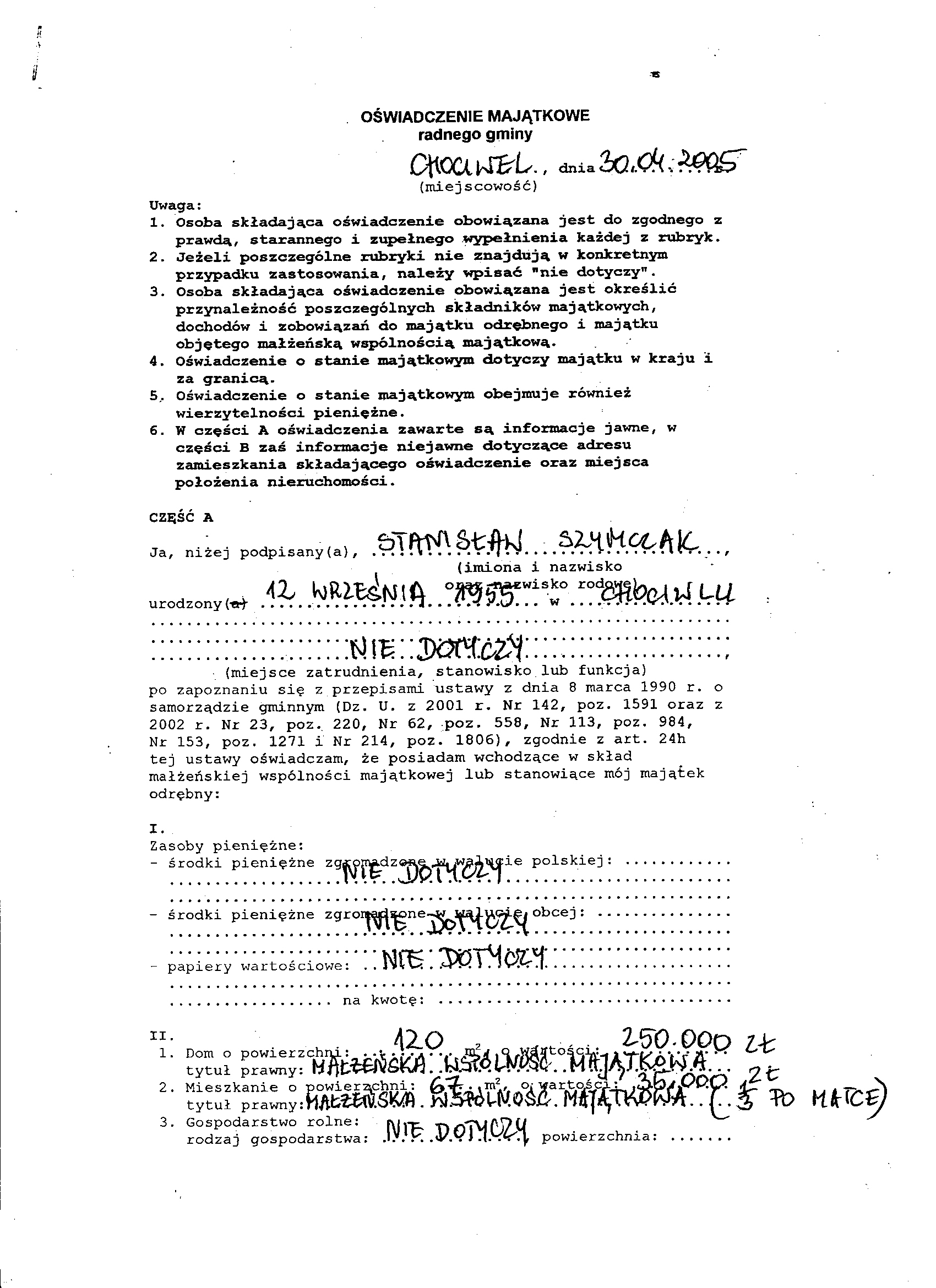 Protokół z przebiegu sprzedaży do III Ogłoszenia Burmistrza Chociwla w sprawie zbycia majątku ruchomego będącego własnością Gminy Chociwel w postaci samochodu ciężarowego - pożarniczego IFA oraz zbycia domku holenderskiego AB Phoenix 26