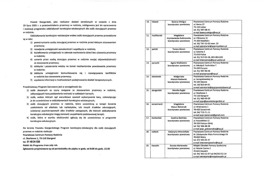 Wykaz osób realizujących zadania w zakresie przeciwdziałania przemocy w rodzinie na poziomie powiatów i województwa zachodniopomorskiego - strona 3 - JPG40 KB
