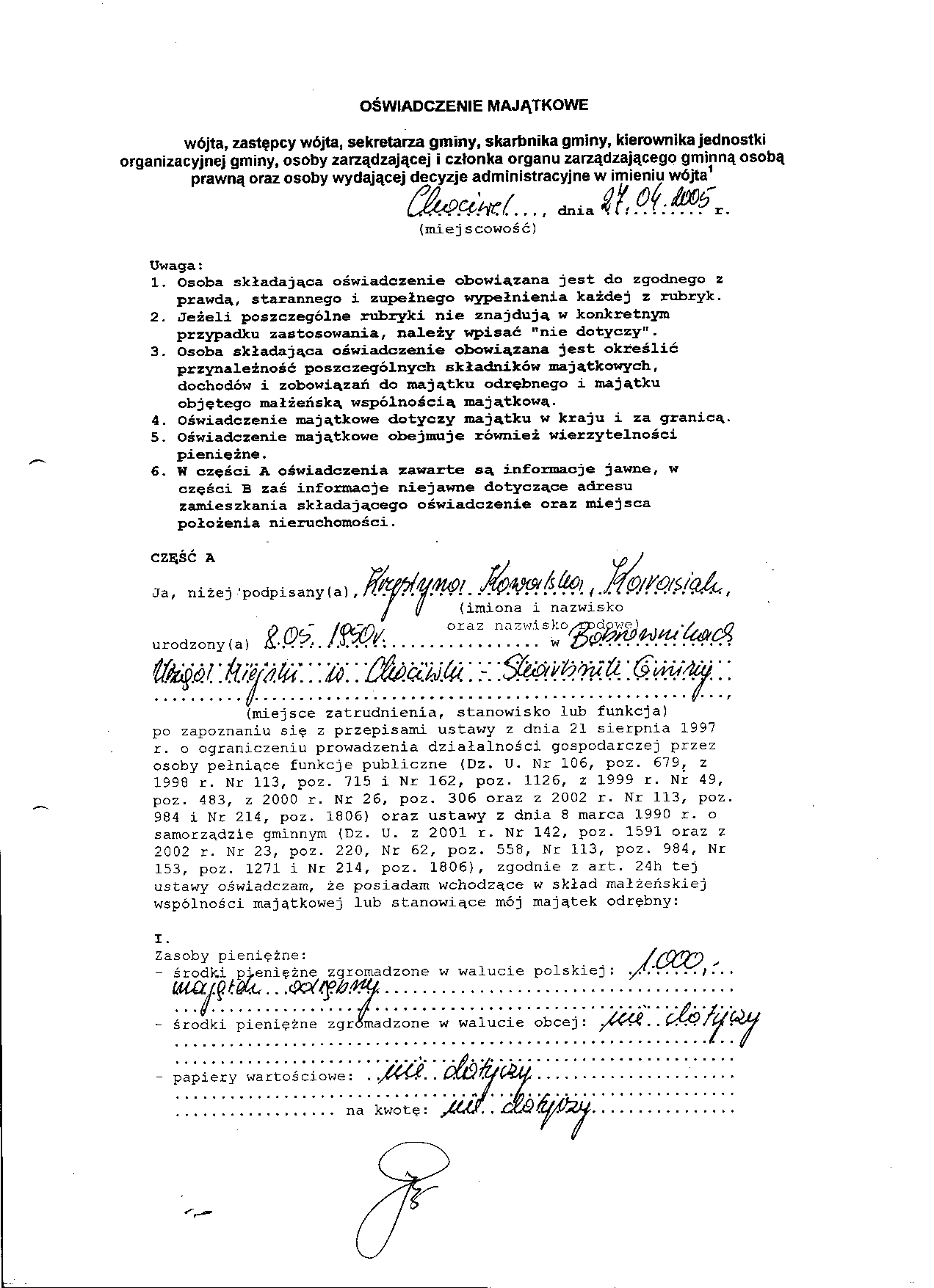 Oświadczenie majątkowe