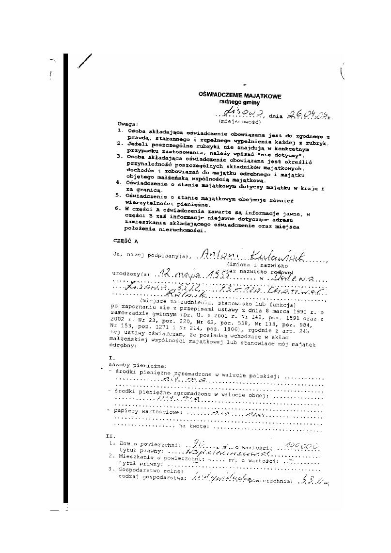 Oświadczenie majątkowe ( kserokopia)
