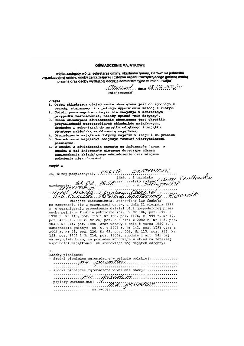 | Osoba, która wytworzyła informację lub odpowiada za treść informacji: | Robert Rusin | 29-08-2003 |