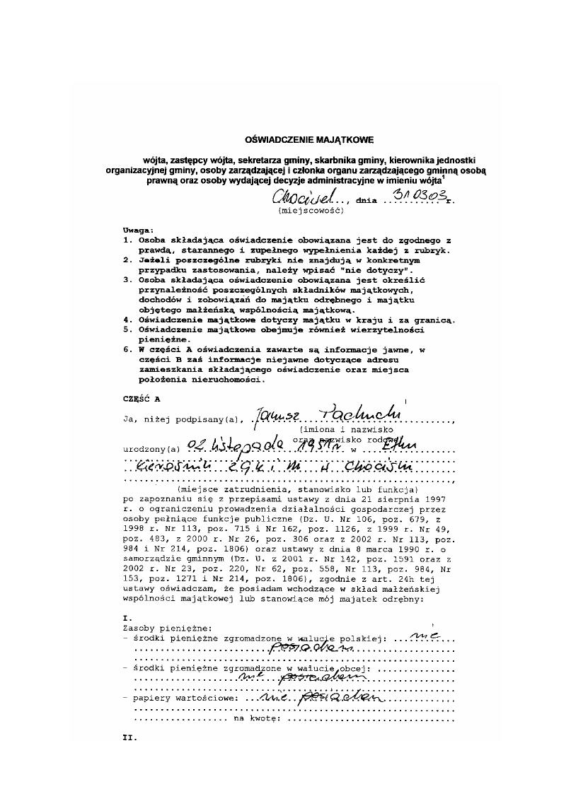 Oświadczenie majątkowe ( kserokopia)