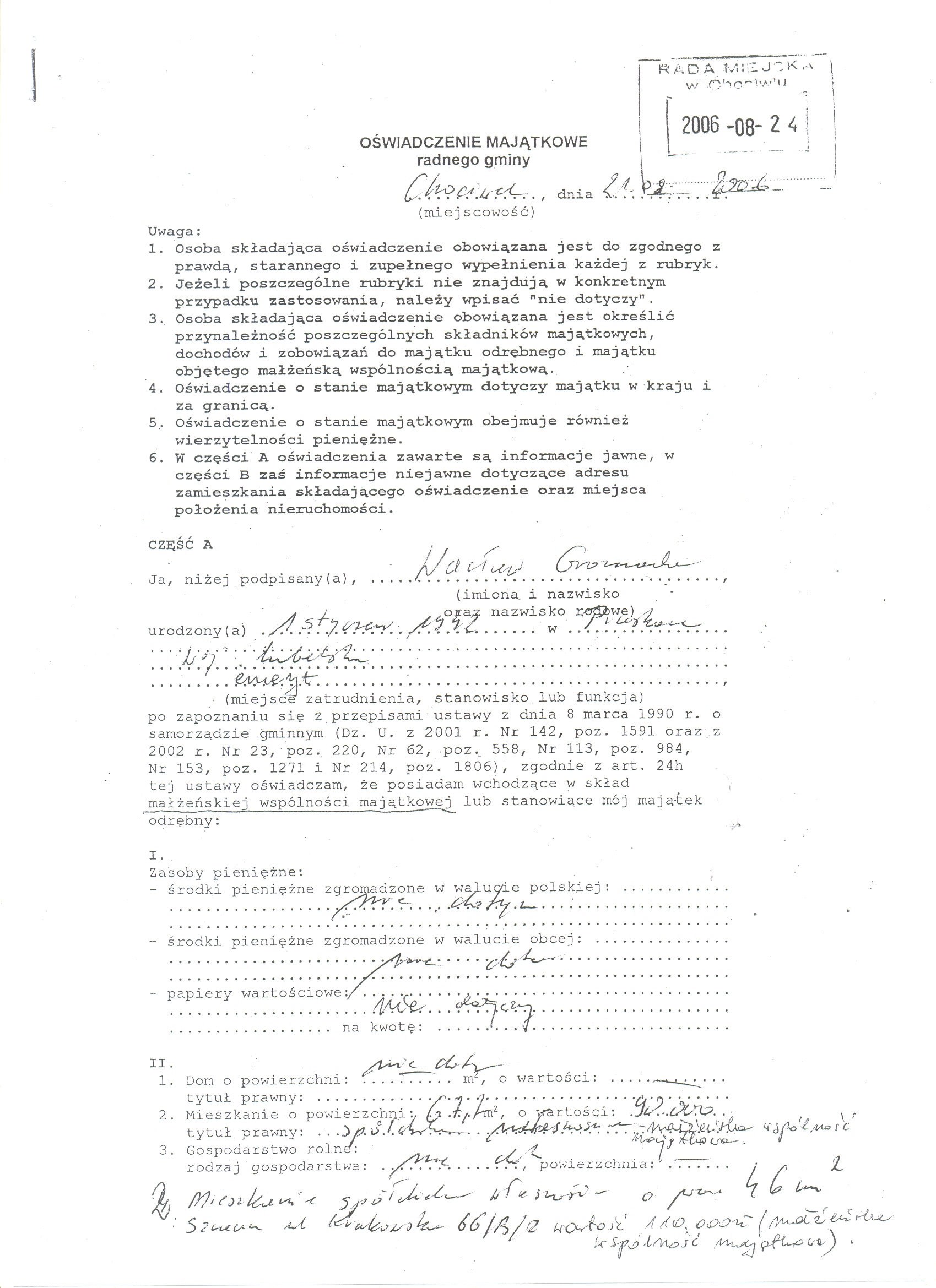 | Osoba, która wytworzyła informację lub odpowiada za treść informacji: | Robert Rusin | 28-09-2006 |