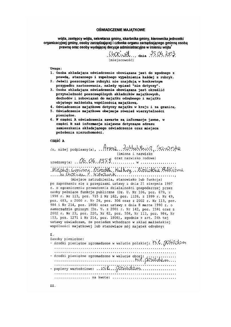 Oświadczenie majątkowe ( kserokopia)
