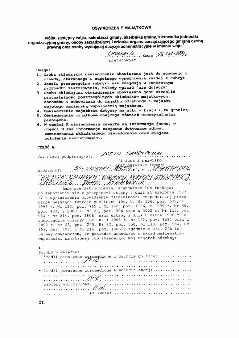 Oświadczenie majątkowe